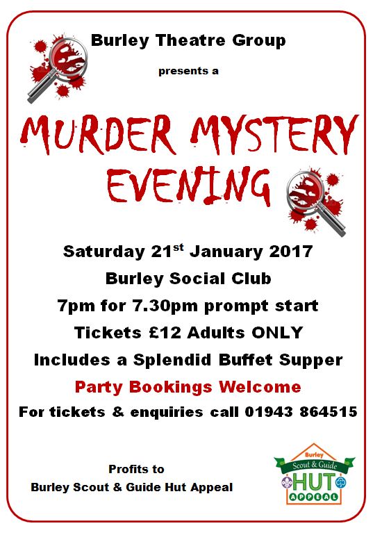 Burley Theatre Group held a very successful Murder Mystery evening in January 2017 and dontated £600 profits towards the new Scout Headquarters